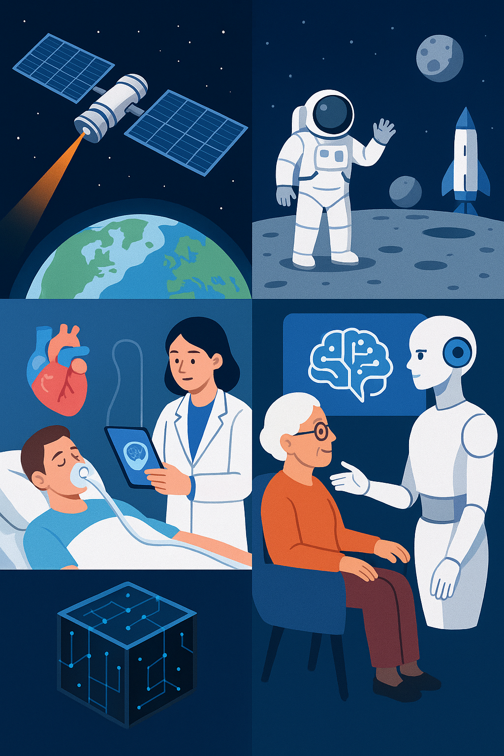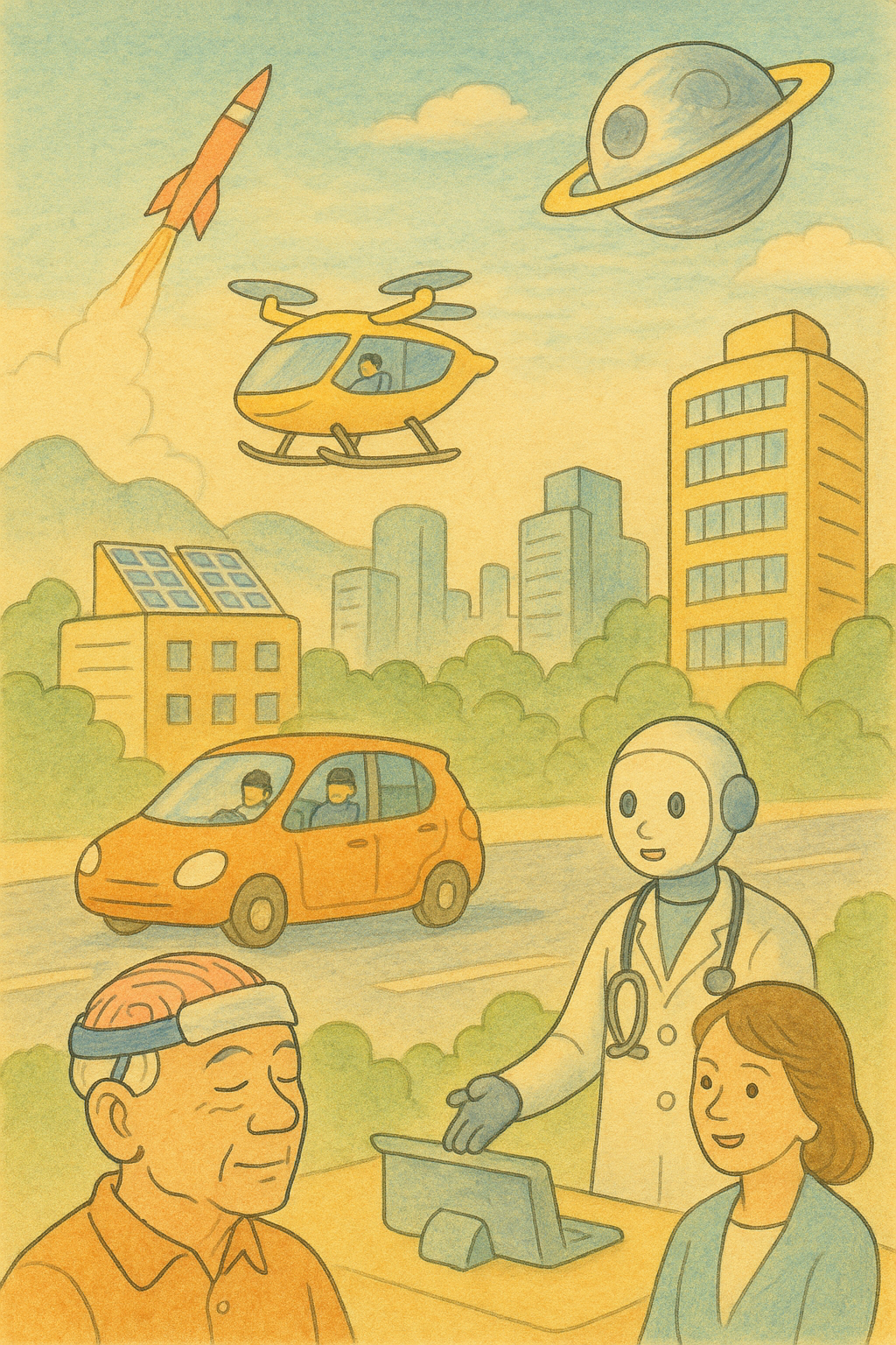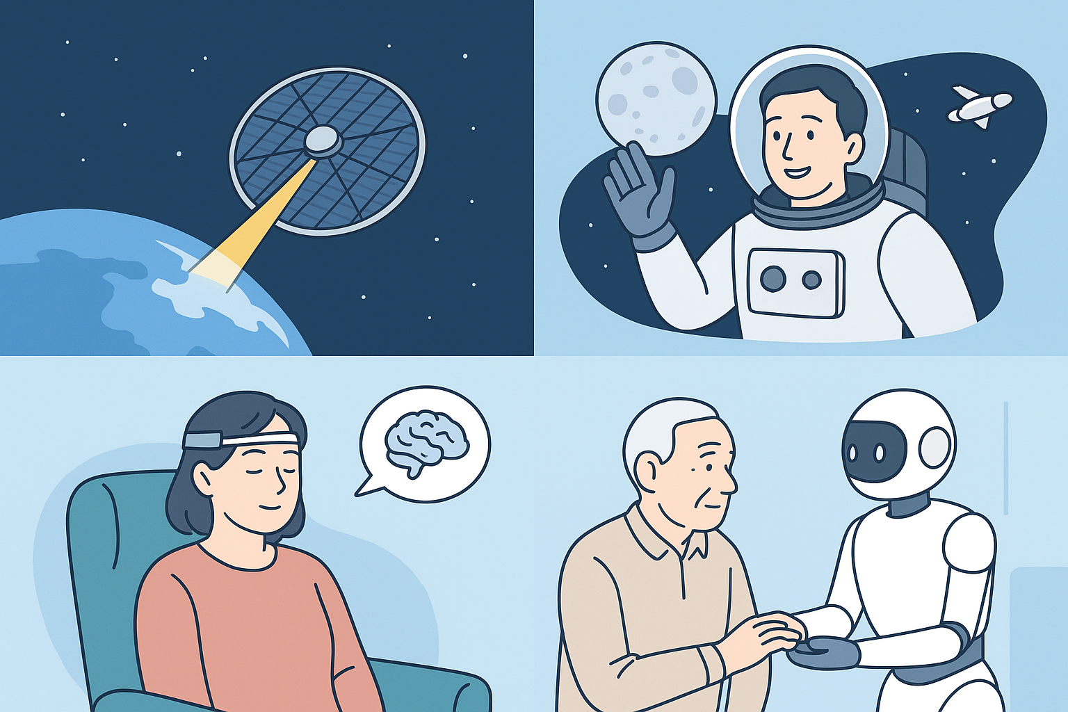 | 기술 분야 | 세부 설명 | | — | — | | 의료 | 3D 프린터와 자가 줄기세포를 이용한 거부반응이 없는 인공장기 | | 사회복지 | AI 프로그램 및 휴머노이드 로봇을 이용한 요양/돌봄 시스템 | | 의료 | 손상된 DNA 수복을 통한, 항노화 및 역노화 | | 컴퓨터과학 | 양자컴퓨터로 더 많고 빠른 연산 가능 | | 인공지능 | AGI, 및 재귀적 자기개선 -> 발전속도 가속화 | | 관광 | 더 빠르고 친환경적인 이동수단 및 관광 범위 증가(달 여행 등) |